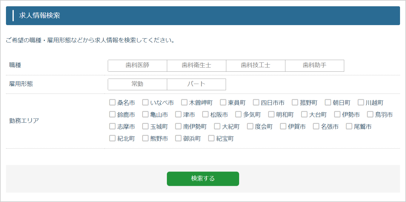 求職者登録をしていただかなくても、歯科医院情報・応募以外の求人情報はご覧いただけます。