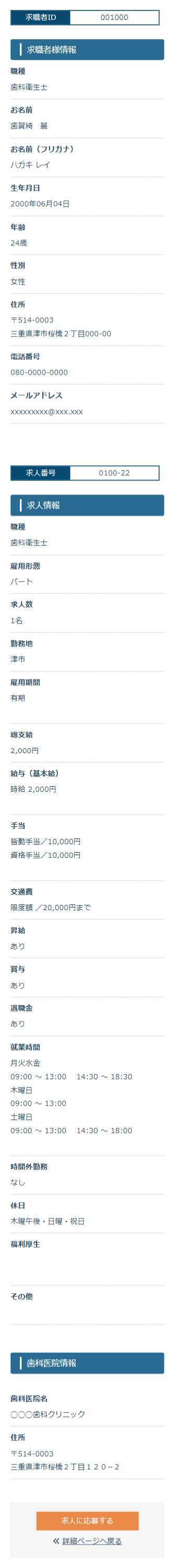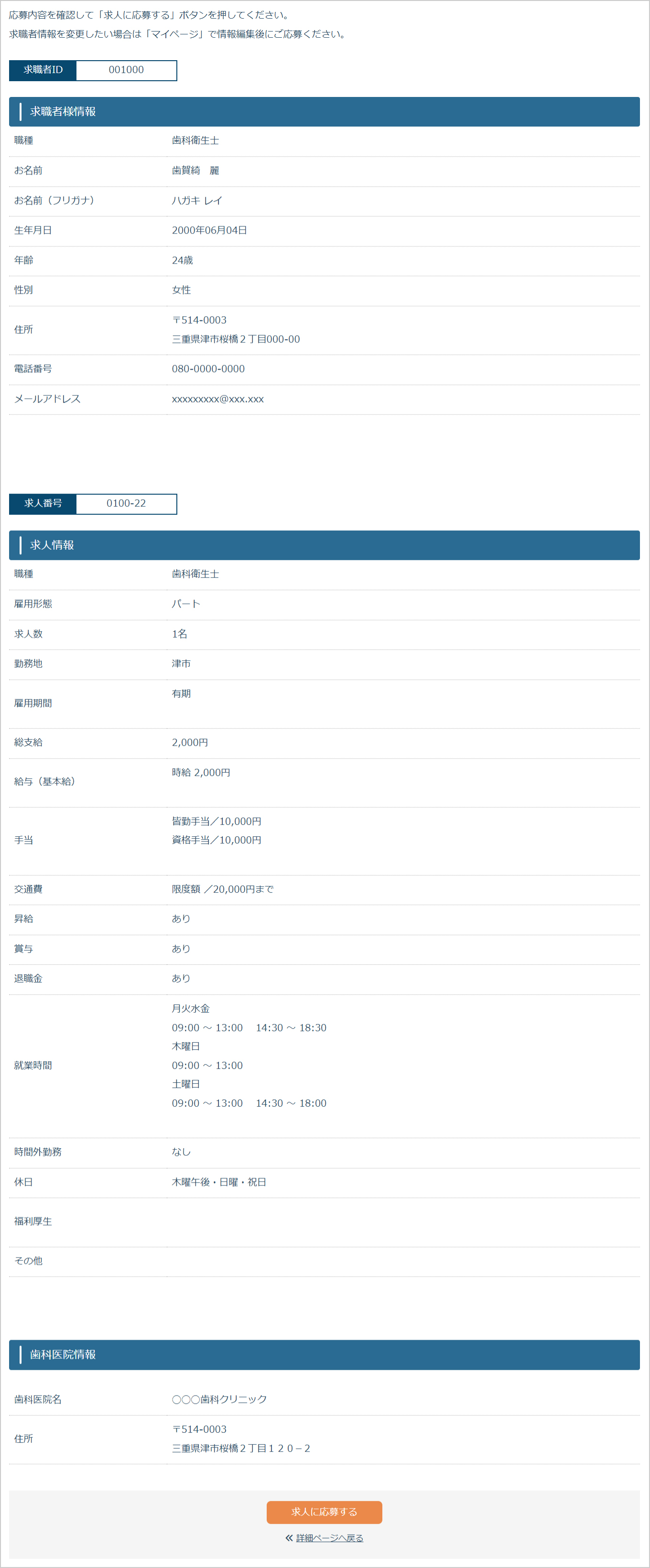 4登録情報と求人情報を確認して「求人に応募する」よりお申し込みください。