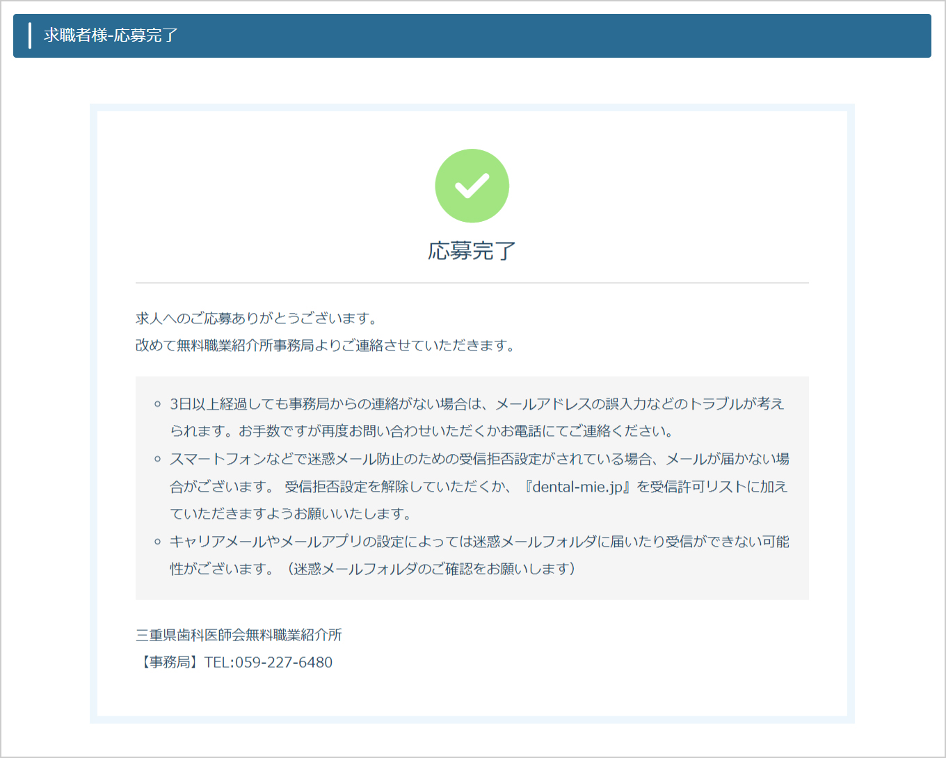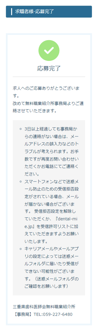 5応募が完了しましたら、ご登録のメールアドレスへ応募内容が送られます。改めて無料職業紹介所事務局よりご連絡させていただきます。