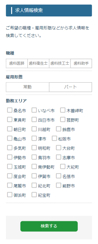 1求人情報は「職種」「雇用形態」「勤務地」から検索可能です。